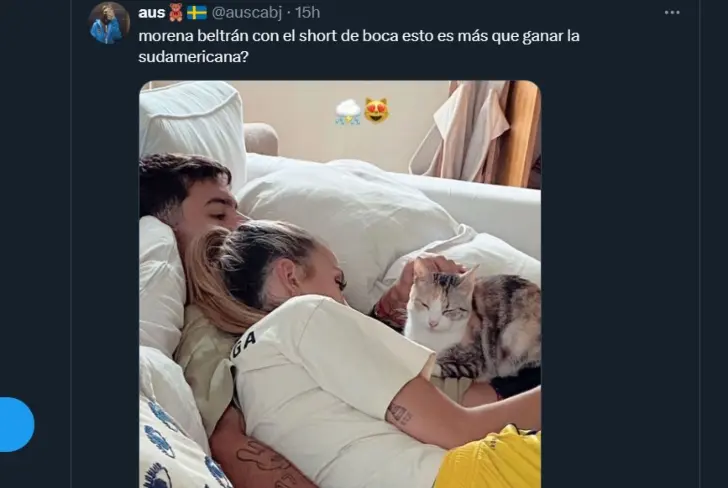 Si bien nunca lo dijo públicamente, hay varios indicios que dejan en claro el amor que Morena le tiene al Xeneize y ahora se confirma aún más. Resulta que este pasado martes, la periodista de ESPN aprovechó el día libre de los jugadores de Boca para pasar tiempo con su pareja, Blondel, y en una foto que este posteó en su cuenta de Instagram, se puede ver a Beltrán con un short amarillo de Boca puesto, dando a entender que tiene indumentaria del club en su armario. De esta manera, se confirma que la periodista es fanática del Xeneize.