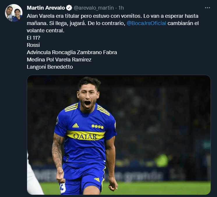 Sin embargo, la información de última hora parece indicar que hay una figura del equipo que no tiene asegurado su lugar. Se trata de Alan Varela y Martín Arévalo fue el encargado de desvelar su situación: "Alan Varela era titular pero estuvo con vomitos. Lo van a esperar hasta mañana. Si llega, jugará. De lo contrario, Boca cambiará el volante central".
