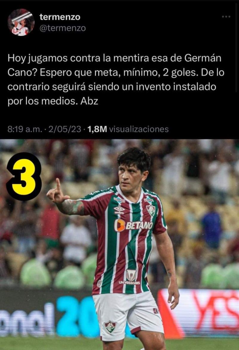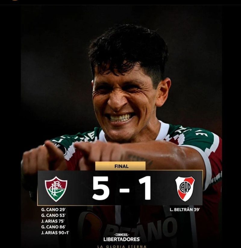 “Este River le hace partido al Manchester City” o “El River Múnich” de Martín Demichelis fueron algunas placas que se pudieron ver durante días en los programas de Argentina. La falta de humildad total les pasó una mala jugada y este martes les llegó el Karma. Es que Fluminense los goleó por 5 a 1 en un baile que permanecerá en la historia, con un triplete de Germán Cano, bostero de ley.