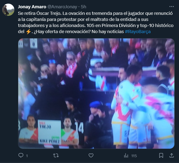 “Gran actuación de Trejo“, fue lo que los medios españoles expresaron del mediocampista. Y es que además, el futbolista argentino se fue ovacionado del estadio, tras haber sido reemplazado en el minuto 66 de partido. El Estadio de Vallecas se rompió las manos aplaudiéndolo y además, corearon su nombre durante su salida. Pese a sus diferencias con la directiva del conjunto español, Trejo se convirtió en uno de los ídolos del Rayo Vallecano pero lo cierto es que podría estar jugando sus últimos partidos allí.