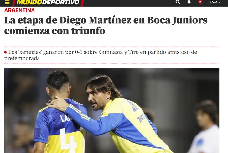 Luego de lo que fue el primer triunfo de Martínez como DT de Boca, distintos medios alrededor del mundo reaccionaron a dicho resultado y así sucedió en España, en Mundo Deportivo. El portal tituló: "La etapa de Diego Martínez en Boca Juniors comienza con triunfo", y allí explicaron cómo fue el triunfo del Xeneize con el gol de Bullaude y además, recalcaron la lesión de Marcos Rojo previo al inicio del encuentro.