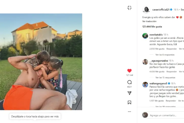 Sabemos que Cavani no suele hacerse presente en redes sociales para hablar sobre críticas y demás, y así fue en esta ocasión. En su cuenta de Instagram, el goleador charrúa publicó una foto de su familia, precisamente de él junto a sus dos hijos, pero lo cierto es que el mensaje que dejó en la publicación sorprendió a todos: “Energía que solo ellos saben dar“, fue lo que escribió 'Edi', dejando a la libre interpretación. Muchos asimilaron este mensaje hacia parte de la hinchada de Boca, que ya no lo banca.