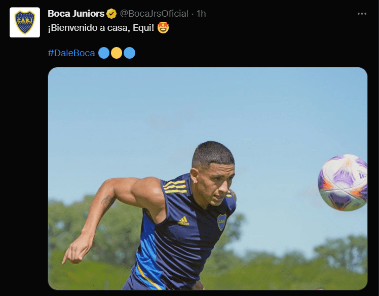 Su vuelta al club no pasó desapercibida y es que Boca decidió hacer eco con la noticia para que todos los fanáticos estén al tanto del regreso de ‘Equi’. “¡Bienvenido a casa, Equi!”, fue lo que posteó la cuenta oficial de Twitter de Boca junto a una imagen del volante central ya con la indumentaria xeneize.