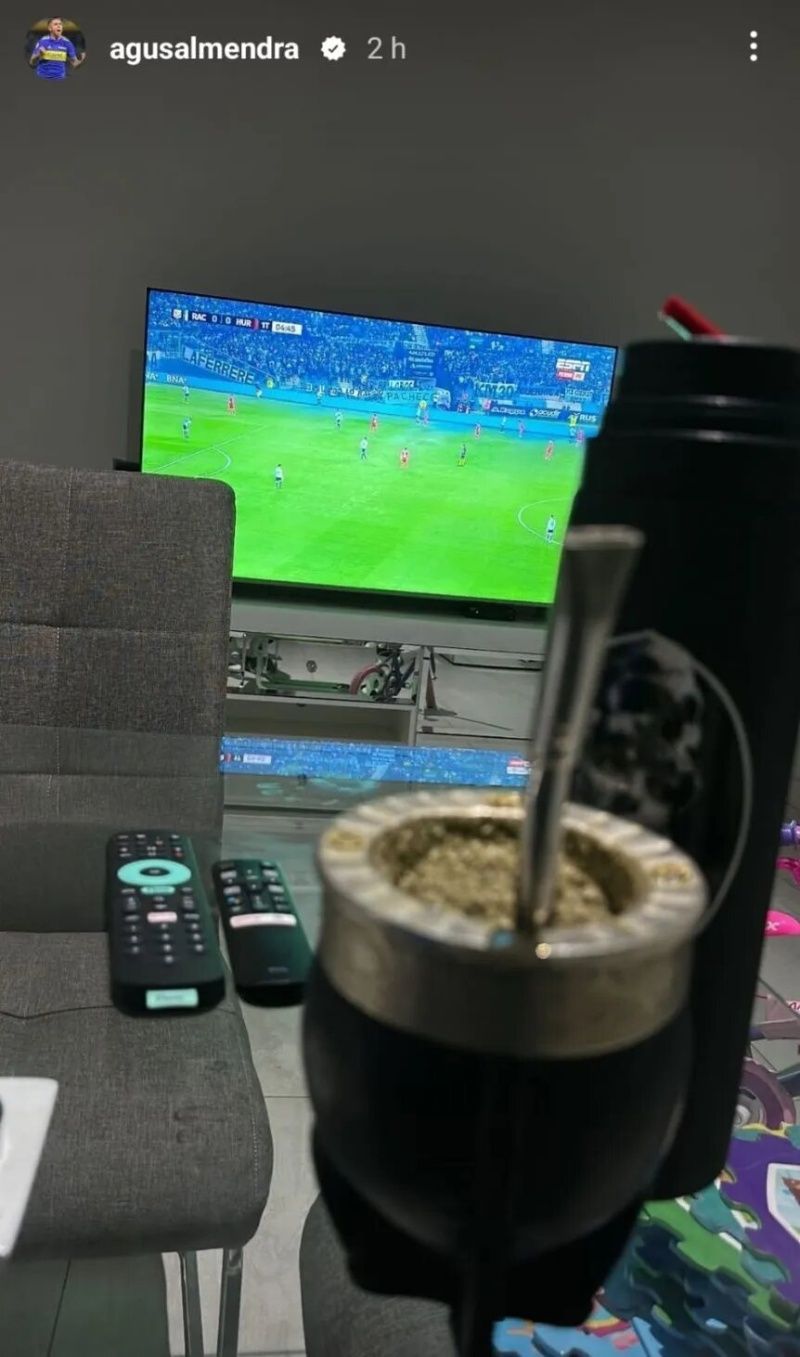 En varias ocasiones el jugador estuvo atento a la actualidad de la Academia, posteando fotos en sus redes sociales donde se lo puede ver observando algún partido. En este caso no fue la excepción y es que el volante de Boca subió una historia a Instagram donde se lo ve mirando el partido de Racing-Huracán que se jugó en el día de ayer, junto con mate de por medio.