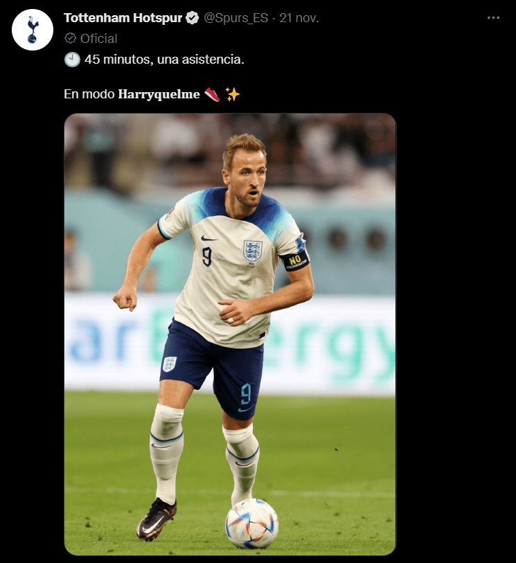 El club del delantero utilizó sus redes sociales para felicitar el gran rendimiento que tuvo en su debut y en Twitter sorprendieron a todos los hinchas del Xeneize. ¿Por qué? La cuenta oficial del Tottenham publicó una imagen de Kane con el siguiente texto: “45 minutos, una asistencia. En modo Harryquelme”, haciendo referencia a Juan Román Riquelme.