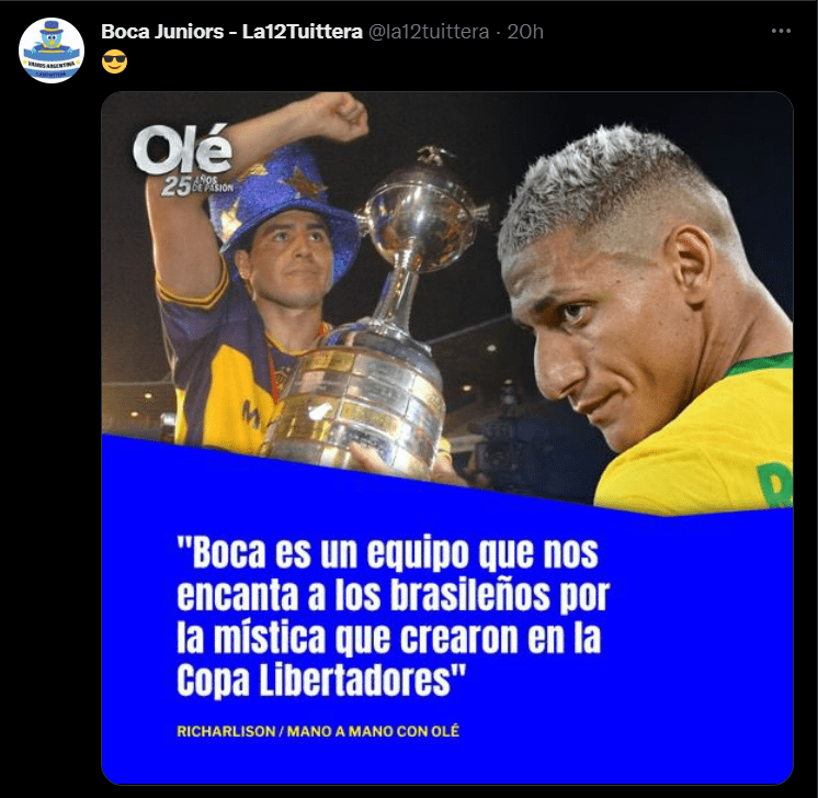 A partir del doblete del brasileño, los hinchas de Boca levantaron unas declaraciones que había dicho el jugador durante el año pasado. "Tiene una multitud fanática, que apoya todo el tiempo, y el club parece estar muy conectado con las capas más populares. Terminé creando una identificación con ellos por ese motivo", había dicho en una entrevista con Olé.