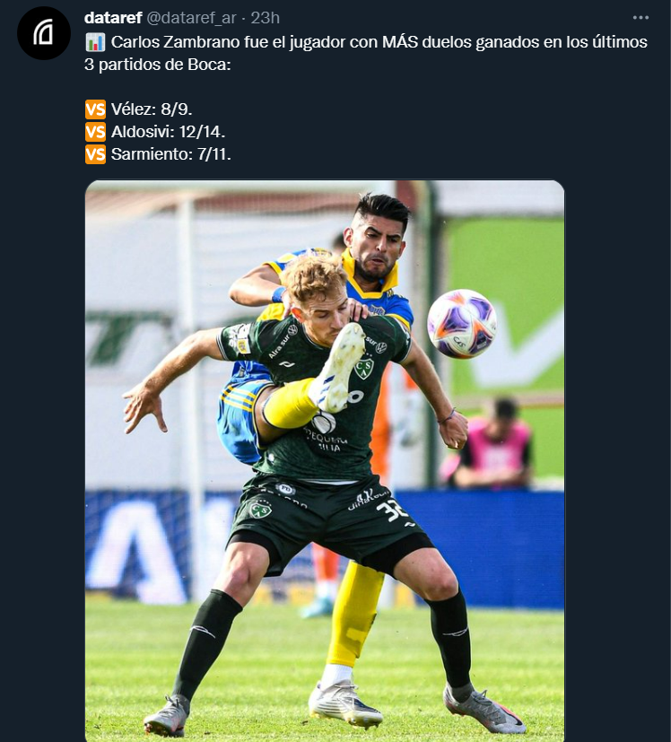 Y es que el ‘Kaiser’ ha sido el único jugador de Boca que ha completado más duelos ganados en estos últimos tres partidos: ante Vélez, Aldosivi y el más reciente, Sarmiento. Es una realidad que estos últimos encuentros, el defensor está siendo más seguro en la marca, pero desde Boca se espera que su rendimiento siga así, ya que actualmente el equipo cuenta con muchas bajas en defensa.