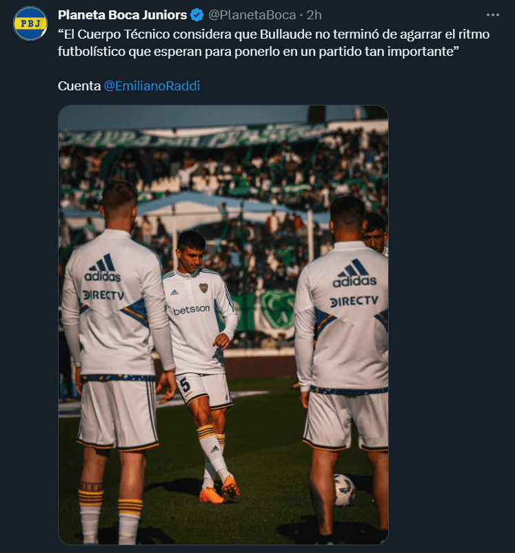 “El Cuerpo Técnico considera que Bullaude no terminó de agarrar el ritmo futbolístico que esperan para ponerlo en un partido tan importante”, fue lo que informó el periodista Emiliano Raddi respecto al estado actual del ex Godoy Cruz. Por este motivo, probablemente no sume minutos frente a Racing y veremos cuándo se dará su debut oficial. ¿Será ante Tigre por Copa de la Liga?