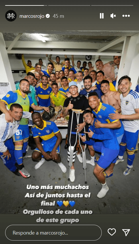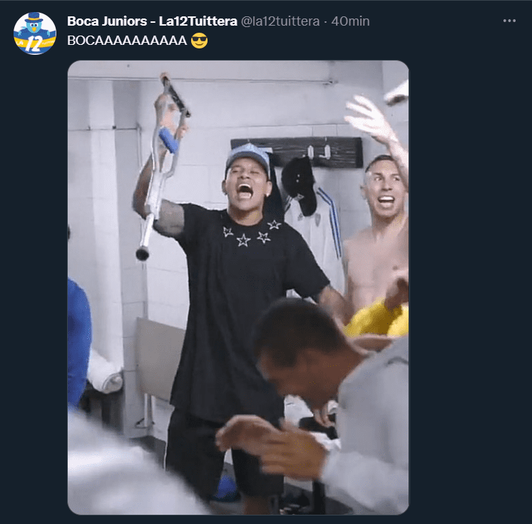 Los jugadores se encuentran en un momento sensacional y tras la victoria ante el Lobo, no pudieron ocultar su alegría de haber quedado como los únicos líderes del campeonato. La cuenta oficial de Boca subió un video de los festejos del plantel en los vestuarios y allí pudimos observar una divertida situación: Marcos Rojo alentando con muletas, como si estuviera ya cien por cien recuperado.
