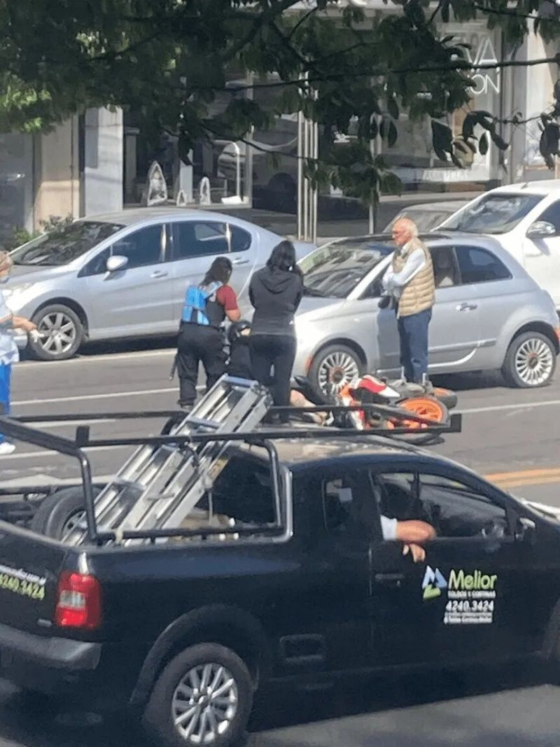 El ex entrenador del Xeneize se encontraba parado en el semáforo, detenido, cuando el motociclista quiso avanzar para posicionarse delante y terminó chocando con el paragolpe trasero lateral izquierdo. Esto provocó la caída tanto del conductor como del acompañante.