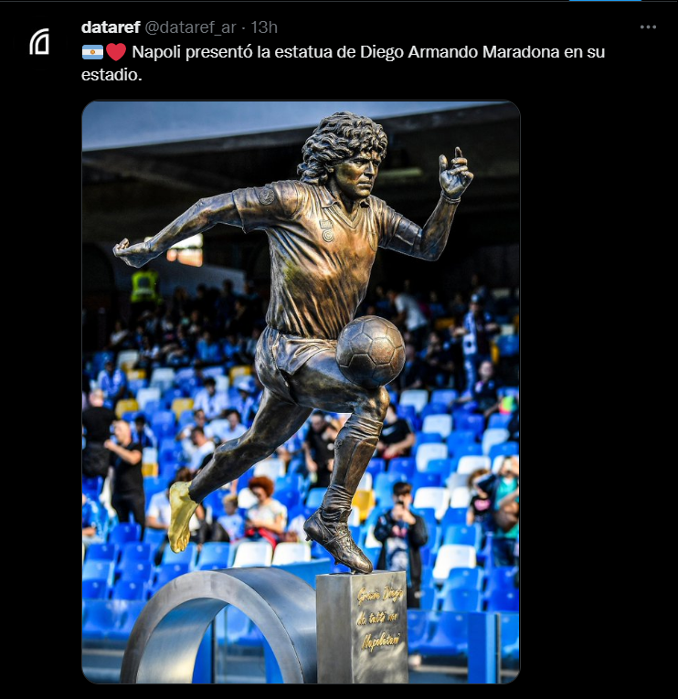 Los saludos en redes sociales eran algo ‘esperables’ sin embargo, Nápoli tomó una decisión que empezó a recorrer el mundo entero. Y es que el club napolitano decidió rendirle homenaje a Maradona durante su cumpleaños en el propio estadio, donde se presentó la nueva estatua del ‘Pelusa’ en el recinto de Nápoles.