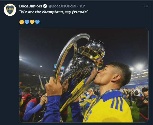 Estas declaraciones no cayeron para nada bien dentro de la institución y tras haberse coronado campeón del fútbol argentino, Boca aprovechó la situación para ‘chicanear’ a Ruggeri y ponerlo en su lugar. La cuenta oficial del club subió una foto de Langoni besando el trofeo junto con el siguiente mensaje “We are the champions, my friends”, que traducido sería: “Somos los campeones, mis amigos”, en referencia a los dichos del gallina de Ruggeri.