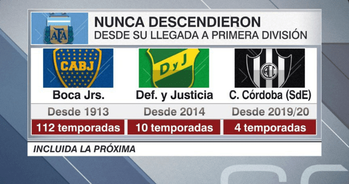 Sin embargo, hay sólo un equipo gigante en Argentina y claramente se trata de Boca, quien manda en todos los sentidos. Y en este caso es el único club grande que nunca descendió y es que desde el año 1913 en adelante, el conjunto de la Ribera nunca logró pisar la segunda categoría del fútbol argentino siendo 109 años consecutivos manteniéndose firme en la élite de nuestro fútbol.